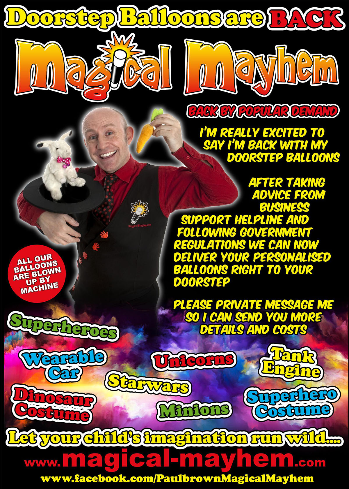 Another amazing creation from Magical Mayhem is the doorstep balloon. Paul is one of the leading balloon artists in the UK. He will use his insane skills to create something you have never seen before!